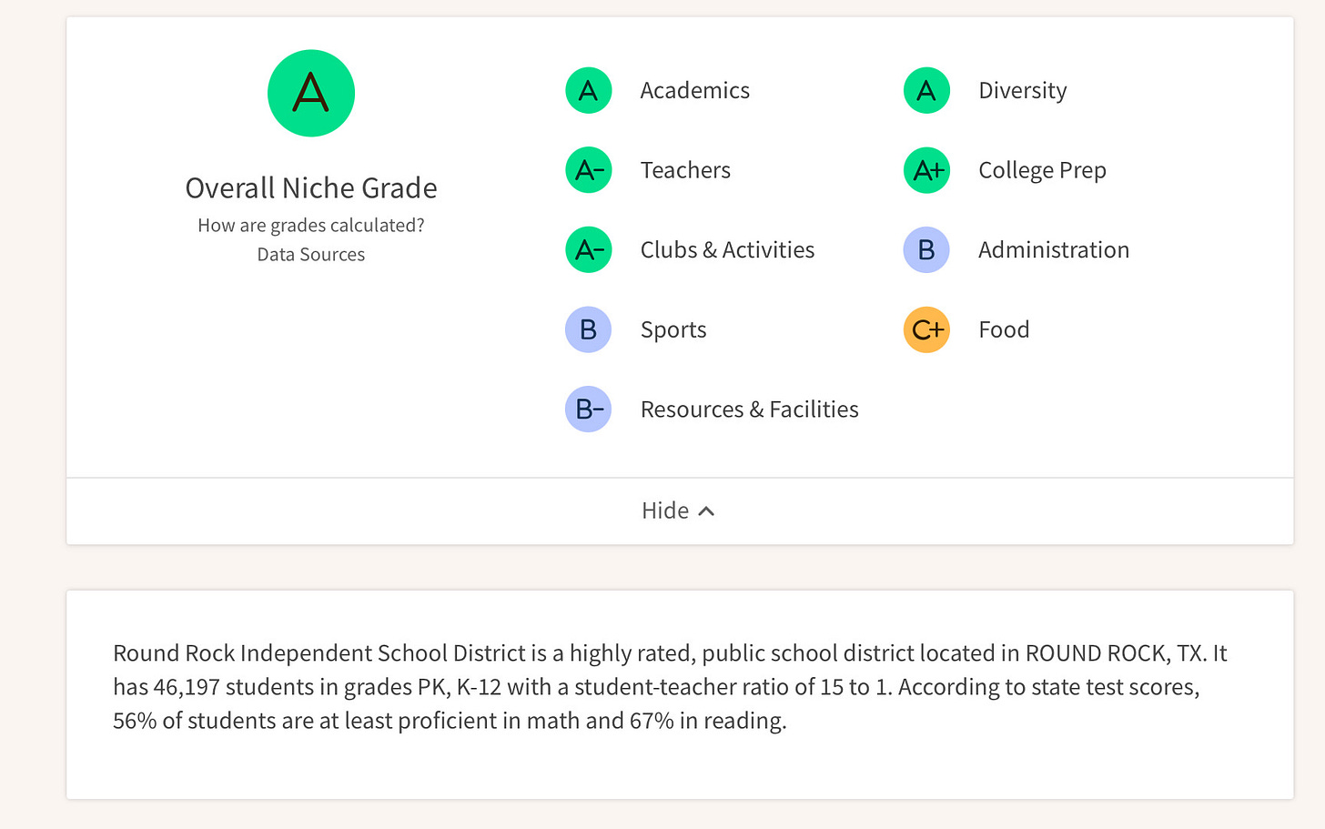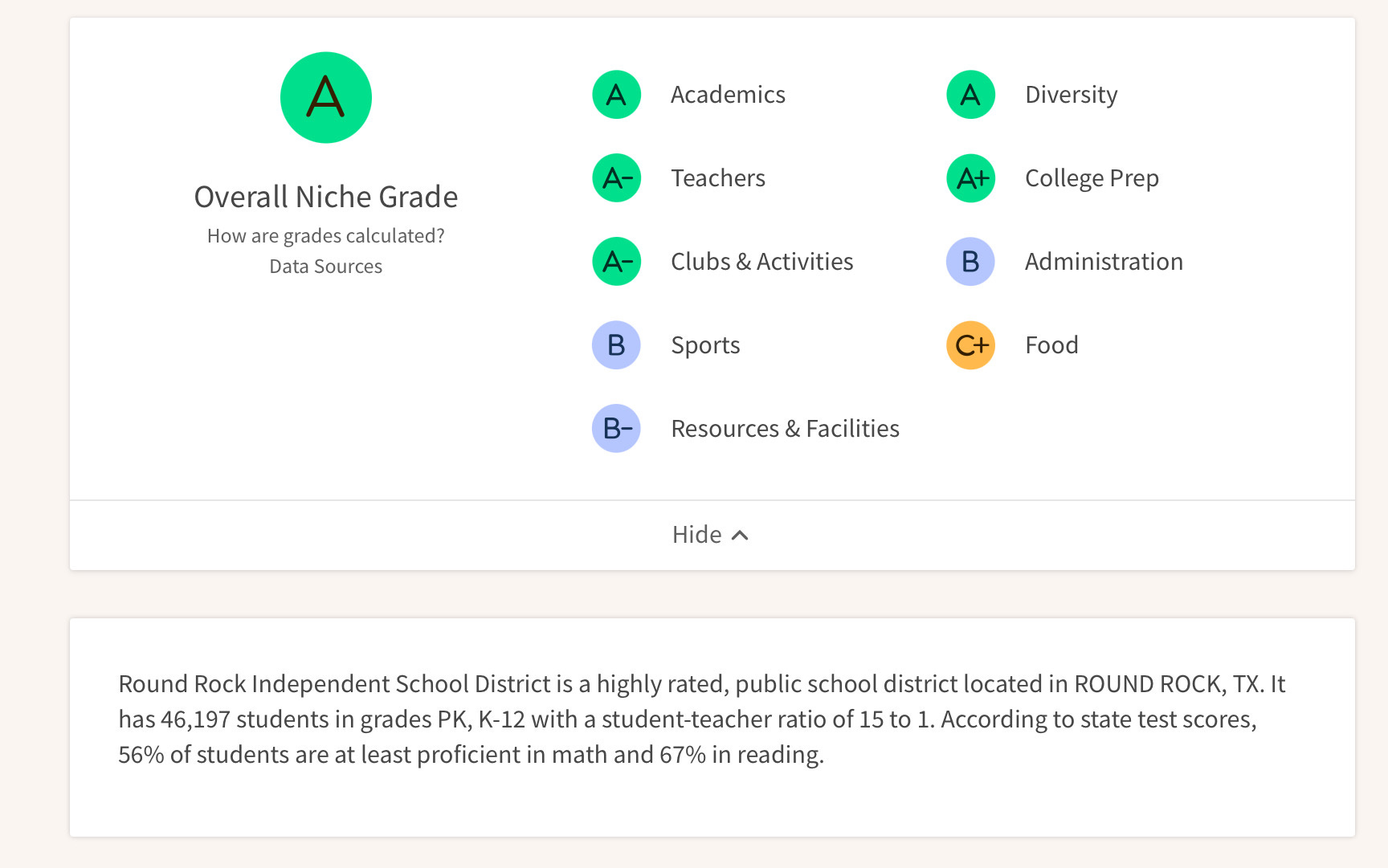 Round Rock ISD: A diversity grade; 27.1% on free/reduced lunch